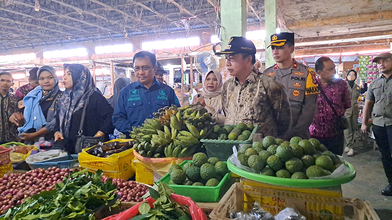 PJ Bupati Tapin M Syarifuddin bersama forkopimda dan instansi terkait lainnya saat meninjau ketersediaan barang dan harga sembako di Pasar Kraton Rantau.