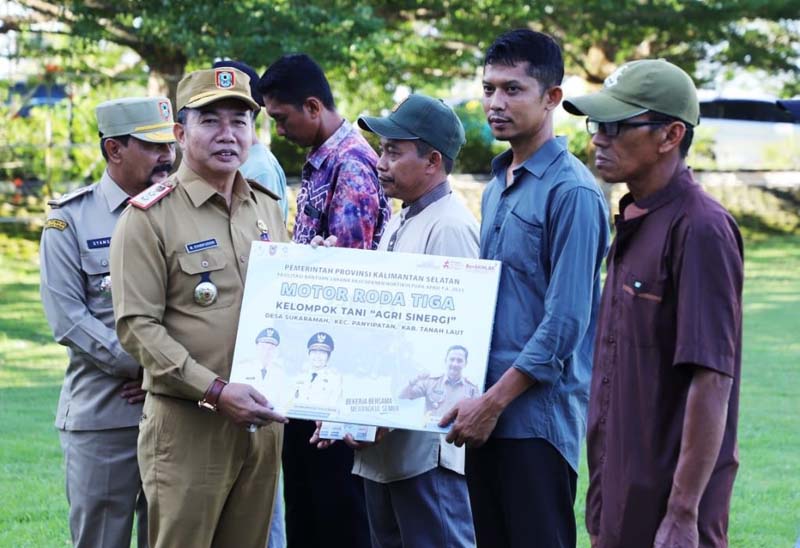 Dalam kesempatan itu, Pj Sekdaprov Kalsel menyerahkan fasilitas bantuan kegiatan alat sarana prasarana holtikultura berupa motor roda tiga kepada perwakilan kelompok tani (Poktan) yaitu Sapadangsanakan (Kota Banjarbaru).
