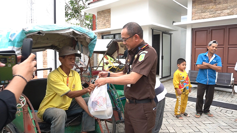 Di dampingi seluruh pegawai kejaksaan, Kajari Tapin Adi Fakhrudin membagikan sebanyak 75 paket sembako yang berisi 3 kg beras, 1 liter minyak goreng, 1 kg gula, 1 pack teh, susu, dan mie instan.