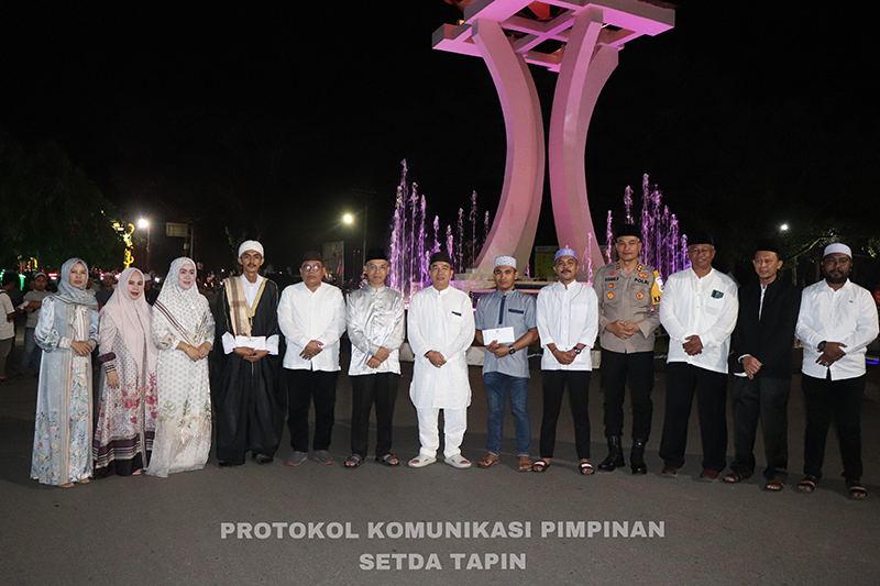 RANTAU – Penjabat (Pj) Bupati Tapin M Syarifuddin MPd bersama Ketua TP PKK Masrupah, Sekretaris Daerah Dr H Sufiansyah MAP, Forkopimda Tapin dan Ketua PHBI Tapin Zahidi Haitami melepas pawai tanglong dalam rangka memeriahkan malam takbiran, Selasa (9/4).