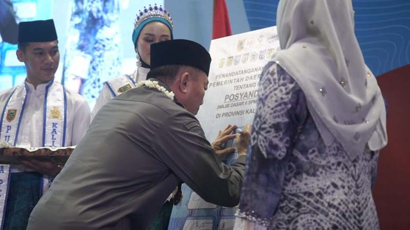 Penandatangan komitmen bersama tersebut disaksikan langsung Gubernur Kalsel, H Muhidin dan Ketua Tim Pembina (TP) Posyandu Provinsi Kalsel, Hj Fathul Jannah serta disaksikan pula Menteri Desa dan Pembangunan Daerah Tertinggal RI, H Yandri Susanto.