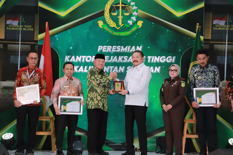 Pada kesempatan itu, Jaksa Agung Burhanuddin memberikan penghargaan sebagai tanda apresiasi kepada Gubernur Kalsel H Muhidin atas dukungan Pemprov Kalsel terhadap pembangunan Kantor Kejati Kalsel di Banjarbaru, sehingga bisa terbangun dengan megah.