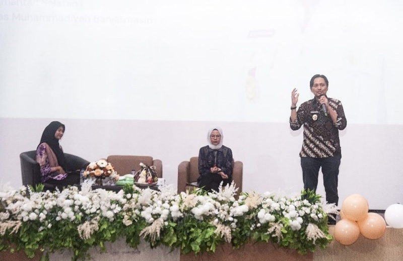 MARABAHAN – Wakil Gubernur (Wagub) Kalimantan Selatan, H Hasnuryadi Sulaiman didampingi sang istri, drg Ellyana Trisya Hasnuryadi hadir sebagai pembicara utama dalam Seminar Nasional yang diselenggarakan Badan Eksekutif Mahasiswa (BEM) Fakultas Psikologi Universitas Muhammadiyah Banjarmasin (UMB), Sabtu (5/7).