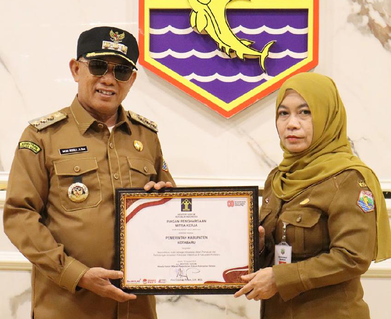 KOTABARU – Pemerintah Kabupaten Kotabaru meraih piagam penghargaan sebagai mitra kerja dari Kantor Wilayah Kementerian Hukum Kalimantam Selatan (Kemenkum Kalsel), yang diserahkan Kepala Kantor Wilayah Kementerian Hukum Kalsel Alex Cosmas Pinem SH MSI.