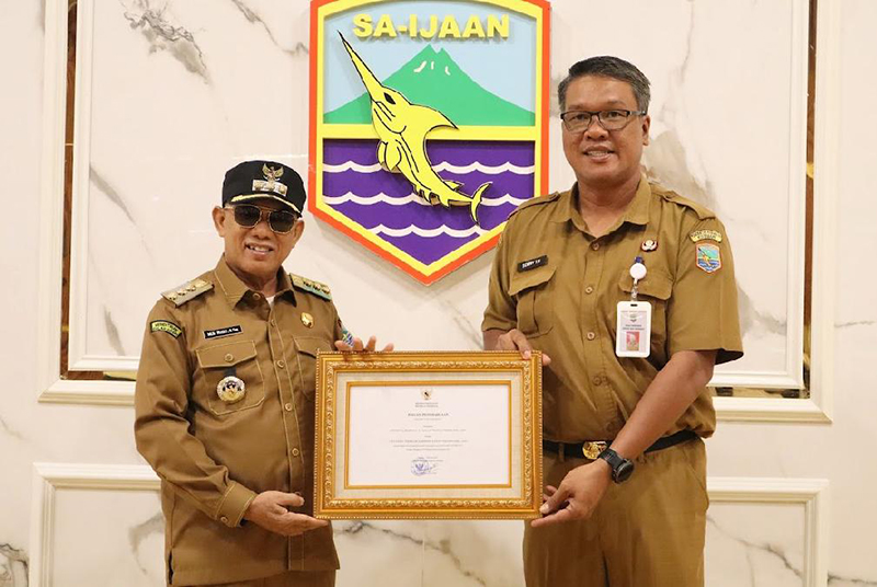 Piagam penghargaan tersebut kemudian diserahkan Kepala Dinas Pariwisata, Pemuda dan Olahraga Sonny Tua Halomoan ST ME kepada Bupati Kotabaru Muhammad Rusli SSos pada Senin (1/9).