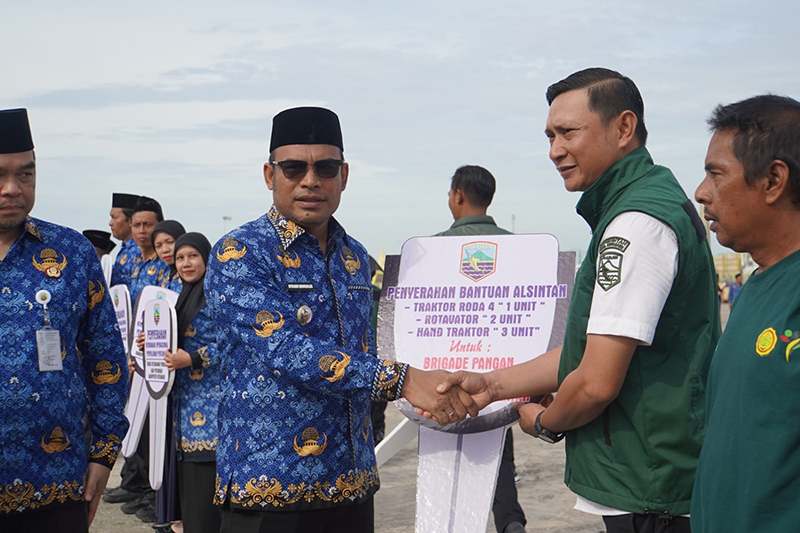 Adapun bantuan alat dan mesin pertanian (alsintan) yang diserahkan, meliputi traktor roda empat, rotavator, dan hand traktor kepada sejumlah brigade pangan, antara lain Brigade Pangan Sari Muda Sejahtera dan Brigade Pangan Timur Sejahtera Bersama Kecamatan Pulau Laut Timur, Brigade Pangan Mitra Harapan Sejahtera Kecamatan Kelumpang Utara, Brigade Pangan Sakadoyan Sejahtera Kecamatan Pamukan Utara, serta Brigade Pangan Desa Rampa Cengal Kecamatan Pamukan Selatan. yga