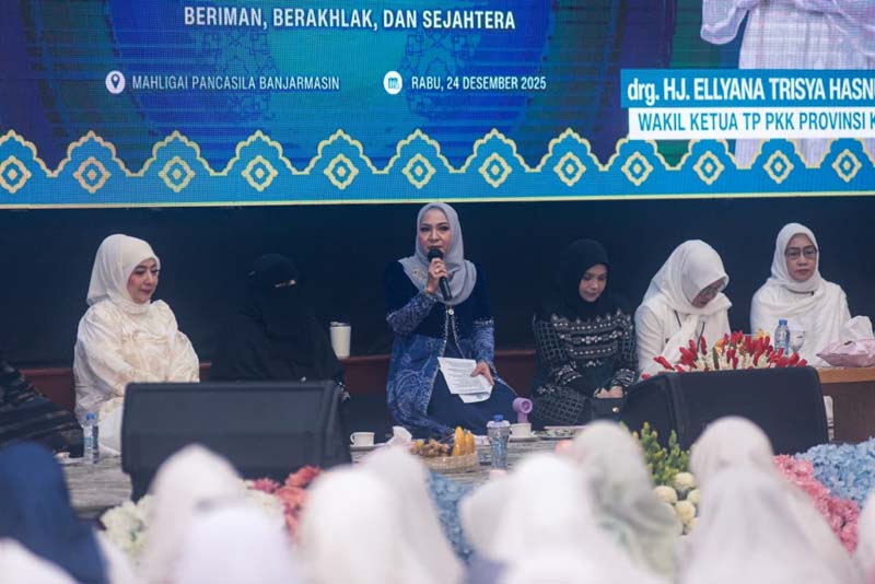 BANJARMASIN – Ketua Tim Penggerak PKK Provinsi Kalimantan Selatan, Hj Fathul Jannah Muhidin didampingi Wakil Ketua II, Hj Ellyana Trisya Hasnuryadi menghadiri peringatan Isra Mikraj (The Night Journey) Nabi Muhammad SAW 1447 hijriah/2025 masehi, di Gedung Mahligai Pancasila Banjarmasin, Rabu (25/12).
