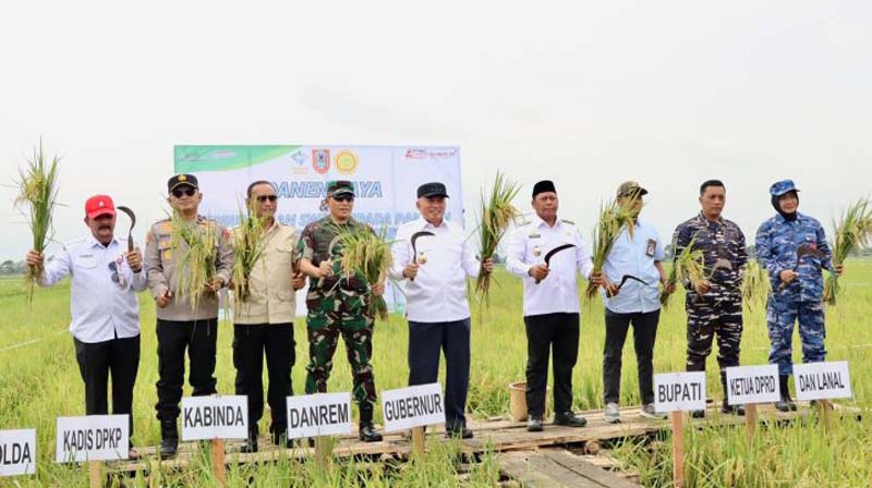 Turut melakukan panen padi, Wakapolda Kalsel Brigjen Pol Dr Golkar Pangarso Raharjo Winarsadi, Danrem 101 Antasari Brigjen TNI Ilham Yunus, Kepala BINDA Kalsel Brigjen Polisi Nurullah dan Kepala Dinas Pertanian dan Ketahanan Pangan Kalsel H Syamsir Rahman di lahan rawa pasang surut seluas 10 hektare.