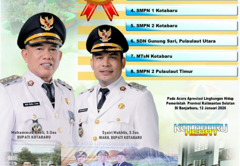 Berikut Sekolah di wilayah Kabupaten Kotabaru yang menerima Penghargaan Sekolah Adiwiyata Tahun 2025: