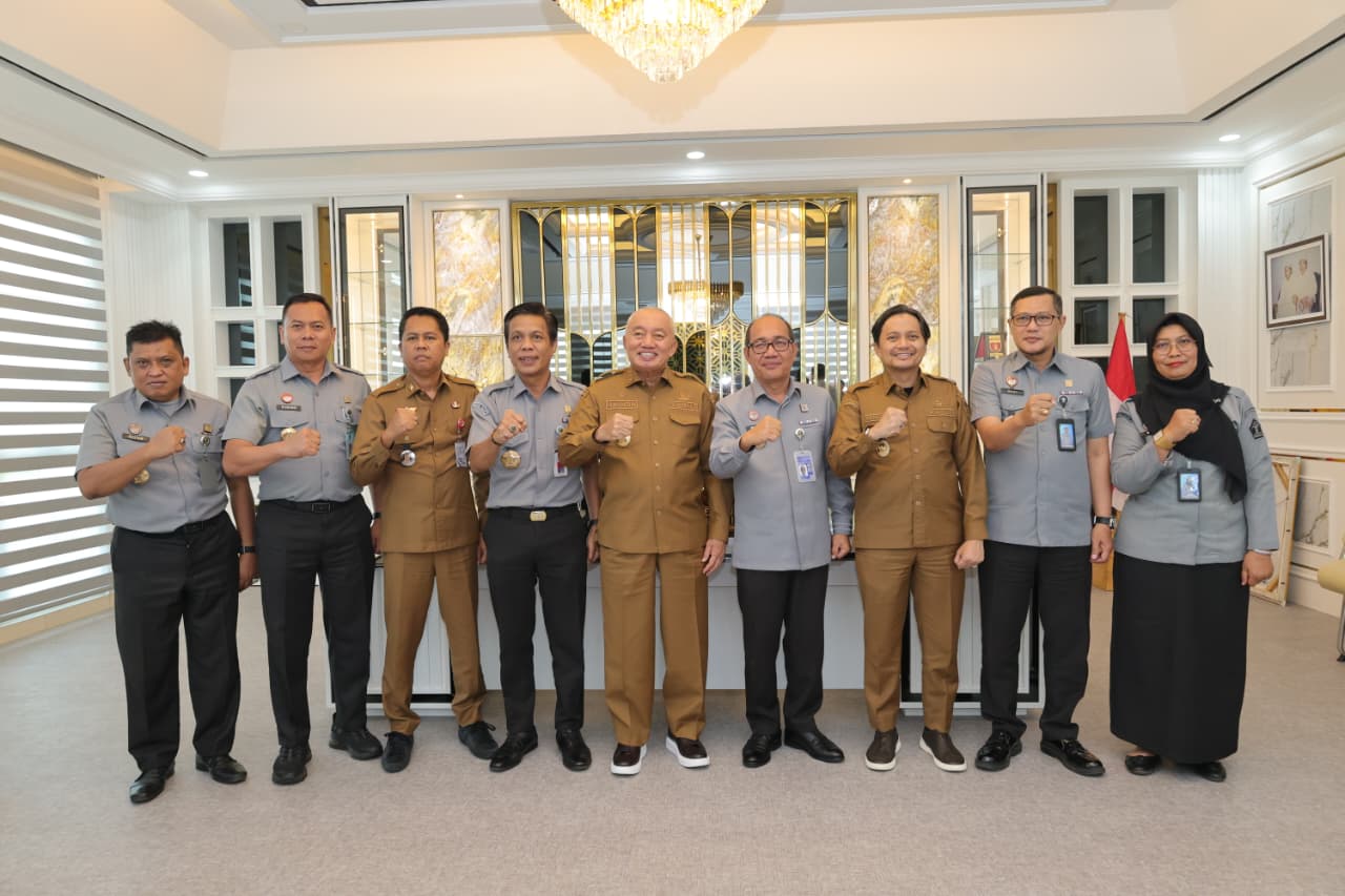Banjarbaru — Gubernur Kalimantan Selatan H. Muhidin didampingi Wakil Gubernur H. Hasnuryadi Sulaiman menerima audiensi Kantor Wilayah Kementerian Hukum Kalimantan Selatan (Kanwil Kemenkum Kalsel) dalam rangka koordinasi dan persiapan rencana peresmian Pos Bantuan Hukum (Posbankum) Desa/Kelurahan. Pertemuan tersebut berlangsung di Ruang Kerja Gubernur, Kantor Sekretariat Daerah Provinsi Kalimantan Selatan, pada Senin (26/1/2026) sore.