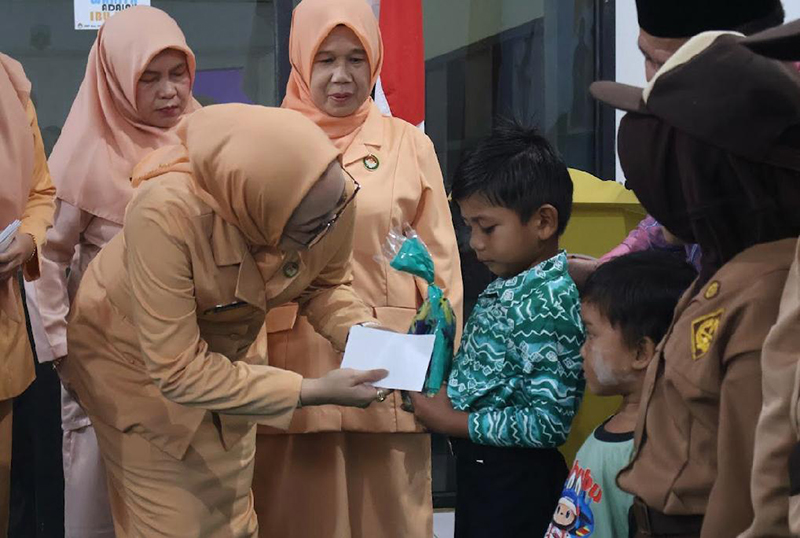 Pada kesempatan itu, Ketua DWP Kotabaru juga menyerahkan santunan untuk anak yatim dan kurang mampu dari tingkat TK, SD dan SMP. yga